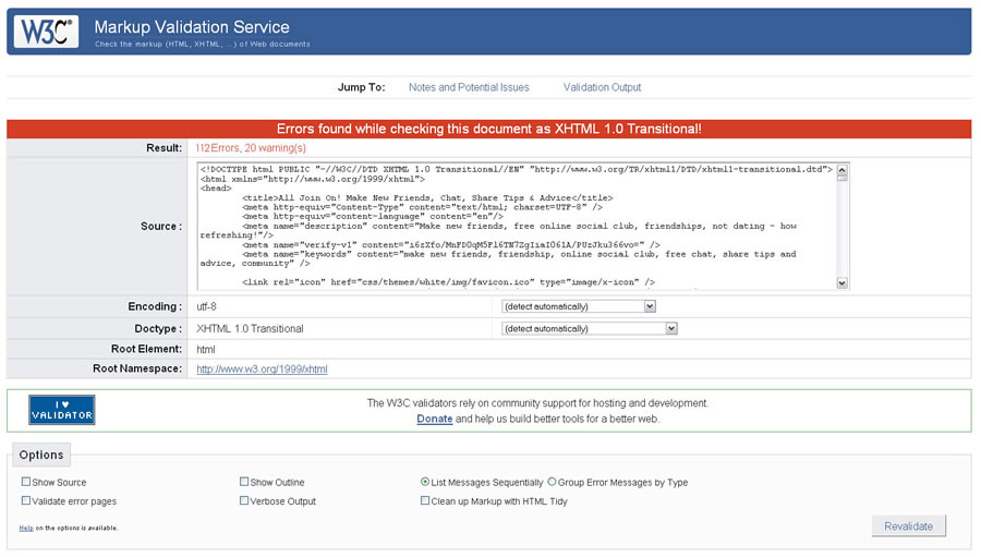 Validate the existing page - that is remove 112 validation errors made by various programmers. This was important because I wanted to start coding from a point where I know that the code (over 600 lines for this page) is written correctly. Over the last couple of years various professional programmers have worked on this page and errors have crept in.